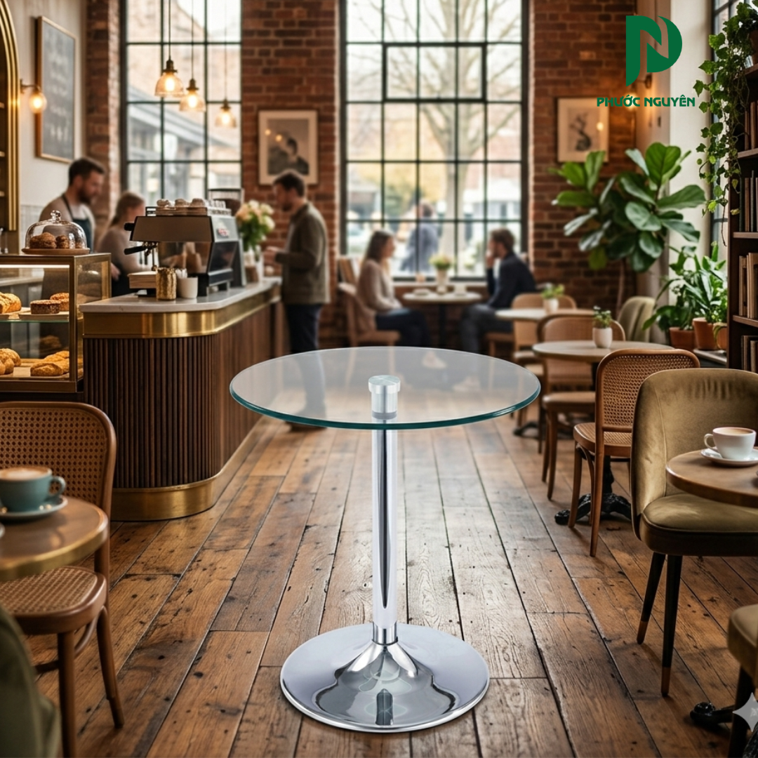 Sản phẩm đặc biệt phù hợp cho các khu vực thảo luận nhanh, góc tiếp khách thân mật hoặc làm bàn thư giãn tại nhà. Sự kết hợp giữa chất liệu kim loại sáng bóng và mặt kính trong suốt tạo nên cảm giác thông thoáng cho tầm nhìn, giúp không gian làm việc vốn khô khan trở nên mềm mại, linh hoạt và giàu tính kết nối hơn.