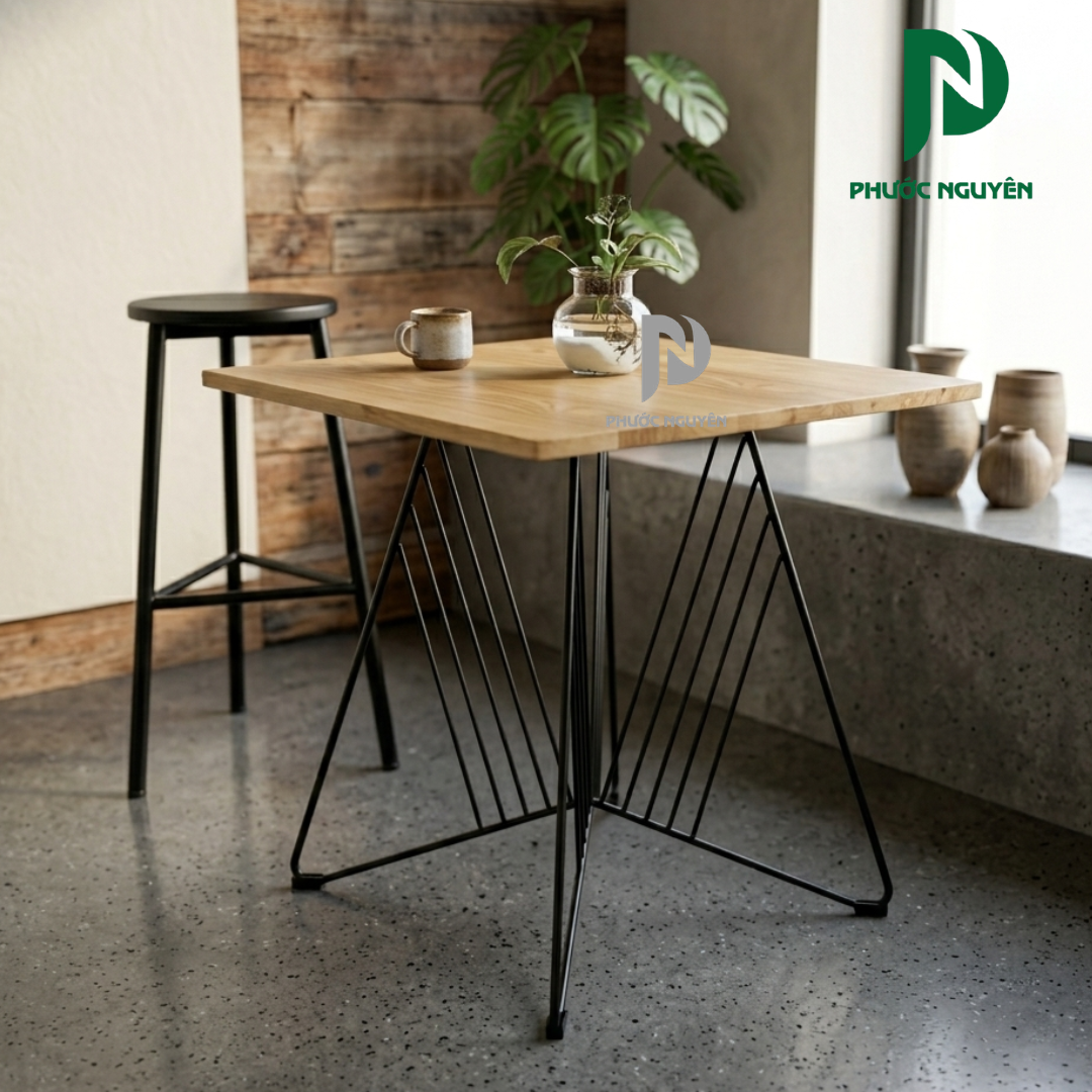Bàn cafe mặt gỗ chân cánh bướm - 004 là một tuyên ngôn về phong cách nội thất hiện đại, nơi những hình khối vuông vức gặp gỡ những đường nét sắt uốn nghệ thuật. Khác với những mẫu bàn tròn truyền thống, thiết kế mặt vuông 60cm mang lại cảm giác vững chãi và gọn gàng tuyệt đối, giúp định hình không gian văn phòng trở nên ngăn nắp và có chiều sâu hơn. Đây là lựa chọn lý tưởng cho những doanh nghiệp yêu thích sự năng động, trẻ trung và mong muốn tạo ra một góc pantry hay khu vực tiếp khách đậm chất "Studio".