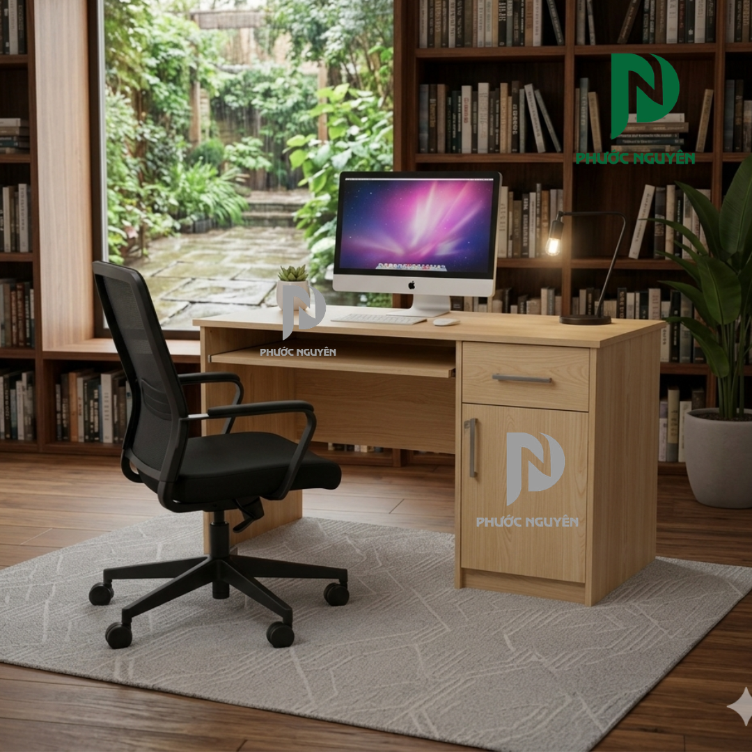 Sản phẩm phù hợp với người dùng cần một không gian làm việc ngăn nắp, thuận tiện trong quá trình sử dụng hàng ngày. Thiết kế hài hòa giữa công năng và thẩm mỹ giúp bàn dễ dàng kết hợp với nhiều phong cách nội thất khác nhau.