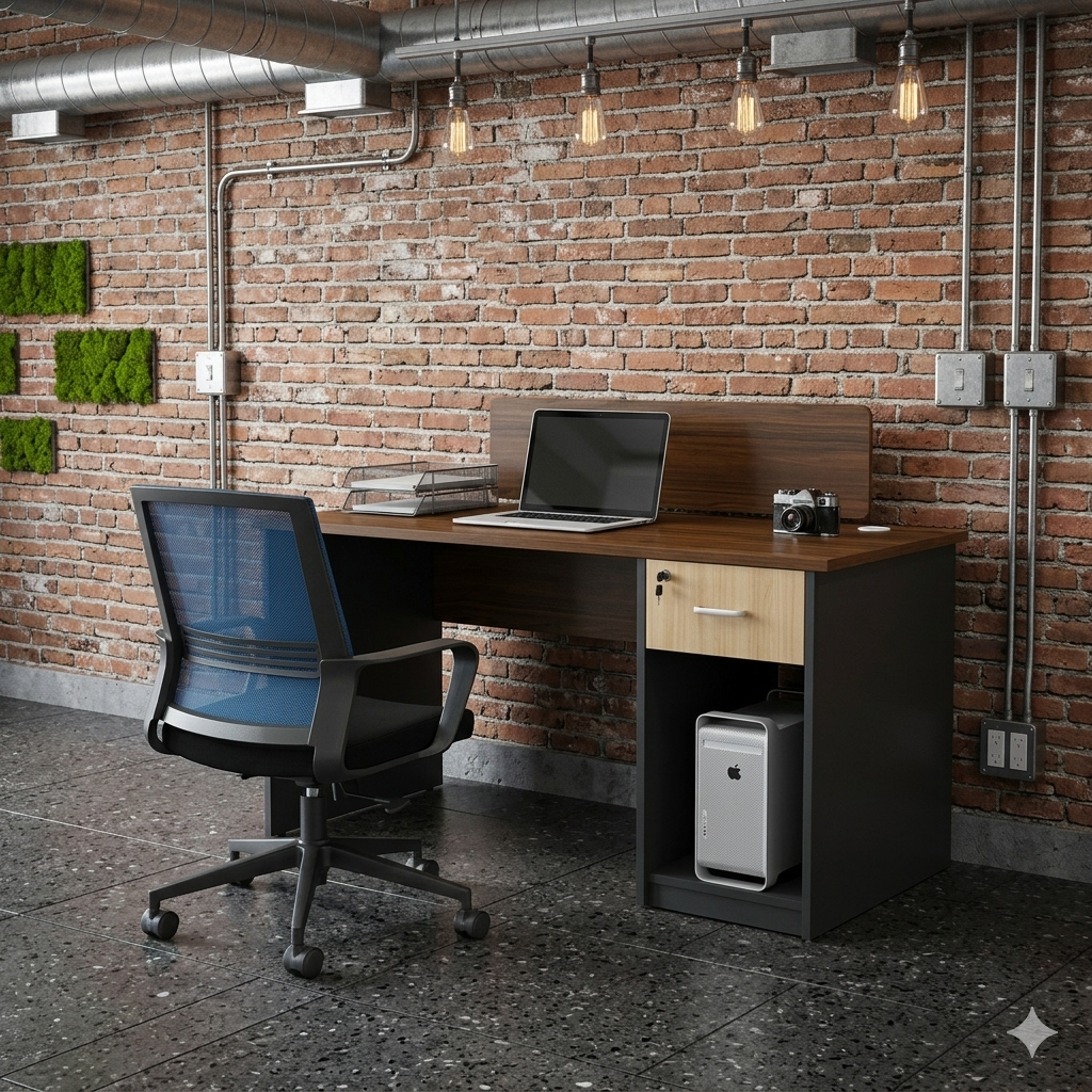 Bàn chân gỗ hộc liền-007 là mẫu bàn làm việc được thiết kế theo phong cách hiện đại, tối giản, phù hợp với nhiều không gian như văn phòng công ty, phòng làm việc tại nhà hoặc khu vực học tập. Kiểu dáng gọn gàng giúp dễ dàng bố trí, tối ưu diện tích và tạo cảm giác ngăn nắp, chuyên nghiệp cho không gian làm việc.