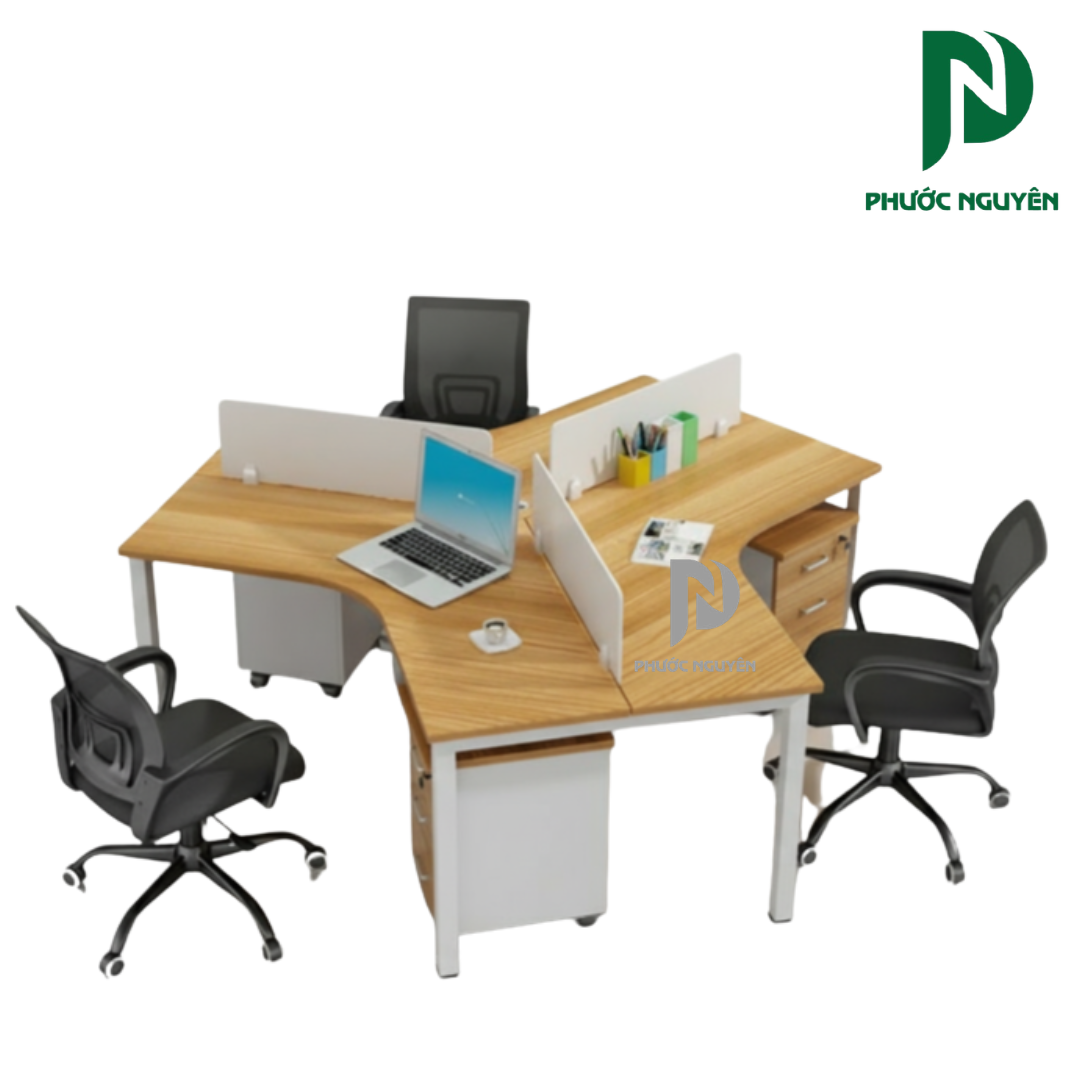 Sản phẩm sở hữu vẻ đẹp thanh thoát nhờ sự kết hợp giữa khung chân sắt sơn tĩnh điện vững chãi và mặt bàn vân gỗ sáng màu. Thiết kế này không chỉ giúp không gian trở nên thông thoáng, hiện đại mà còn khơi gợi tinh thần đồng đội, tạo môi trường làm việc cởi mở nhưng vẫn đảm bảo sự riêng tư cần thiết để mỗi cá nhân tập trung hoàn thành mục tiêu chung.