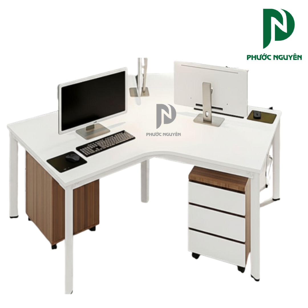 Sản phẩm sử dụng hệ khung thép sơn tĩnh điện với khả năng chịu lực vượt trội, đảm bảo sự vững chãi tuyệt đối ngay cả khi setup nhiều thiết bị máy tính và tài liệu. Lớp phủ Melamine mịn màng không chỉ kháng nước, chống trầy xước mà còn mang lại vẻ đẹp bền bỉ theo thời gian. Tại Nội thất Phước Nguyên, bạn có thể tự do lựa chọn bảng màu gỗ để đồng nhất với phong cách nội thất chung, nâng tầm đẳng cấp và sự chỉn chu cho doanh nghiệp.