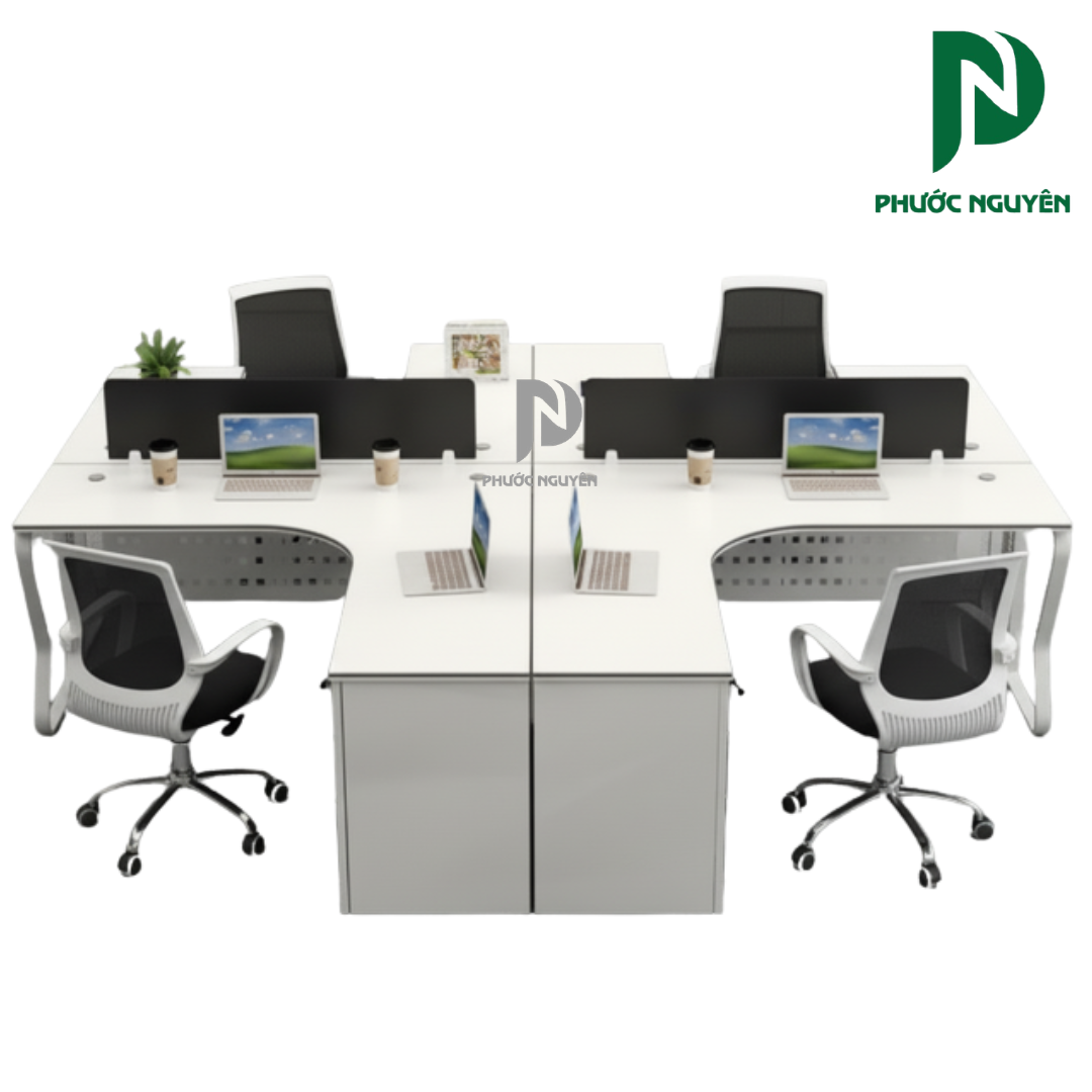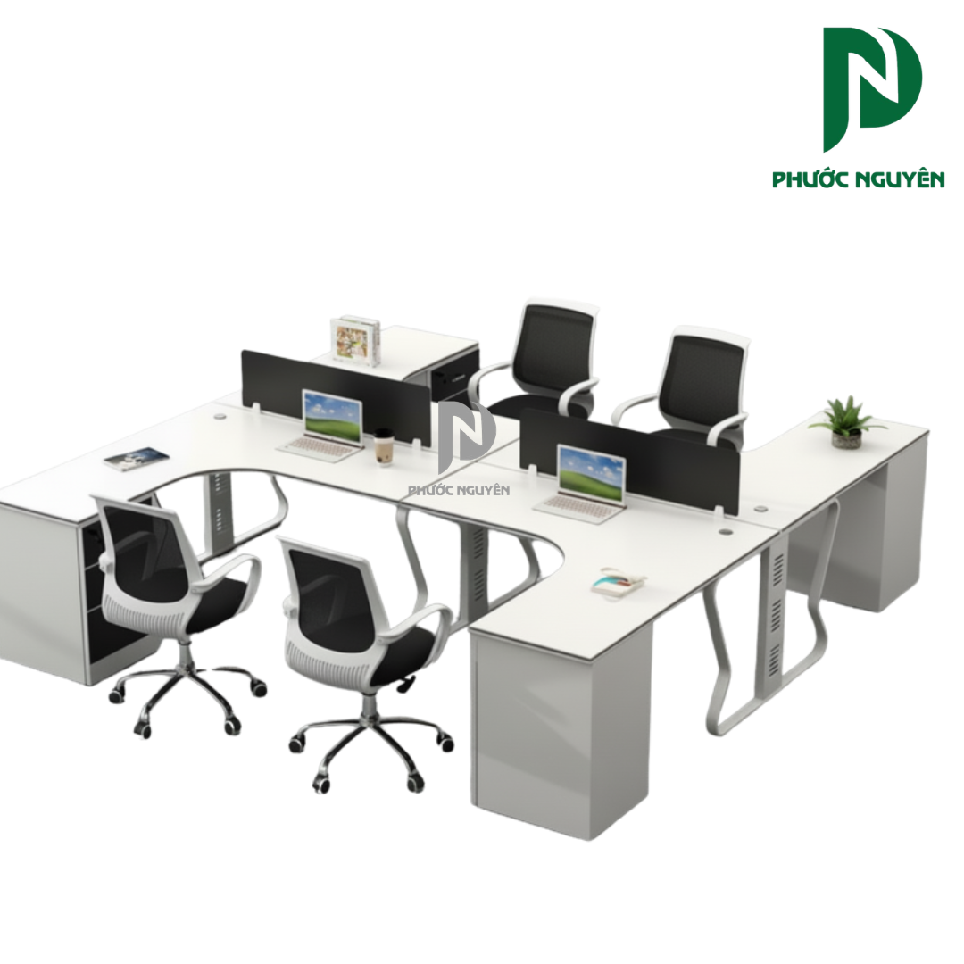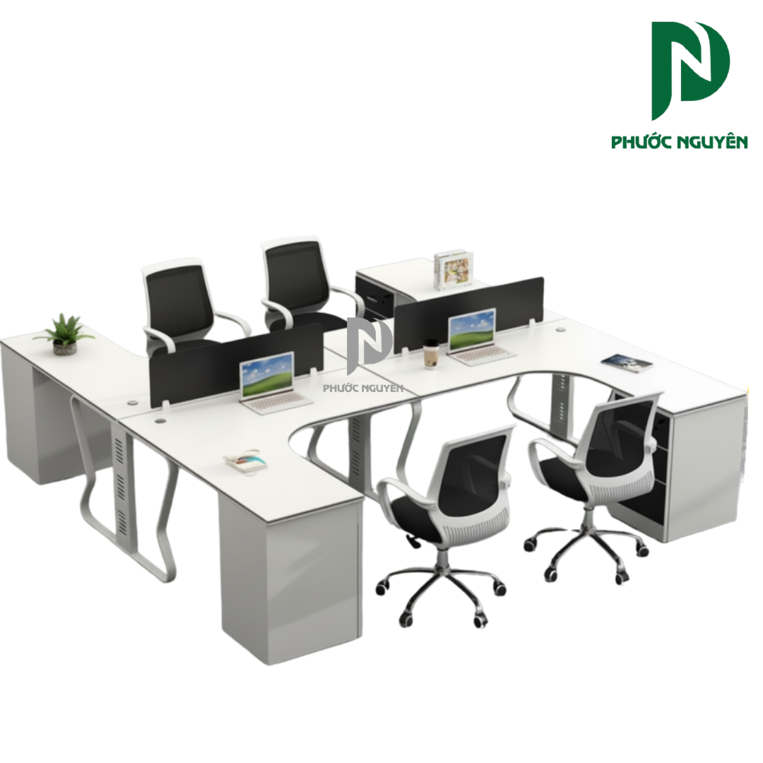 Mẫu bàn cụm 4 người 002 là sự kết hợp hoàn hảo giữa công năng sử dụng và thẩm mỹ kiến trúc văn phòng hiện đại. Được thiết kế chuyên biệt để hỗ trợ các phòng ban làm việc theo nhóm, sản phẩm này giúp thu hẹp khoảng cách giữa các thành viên, thúc đẩy sự thảo luận và chia sẻ ý tưởng một cách tự nhiên nhất.