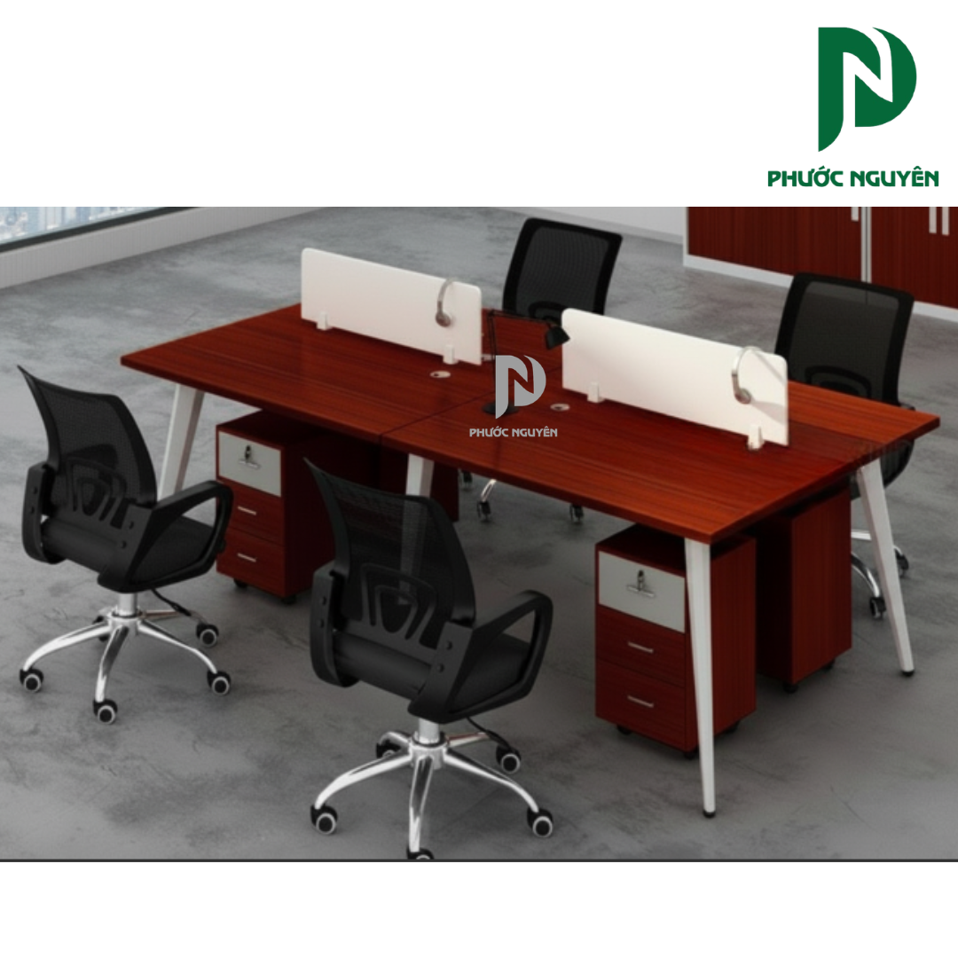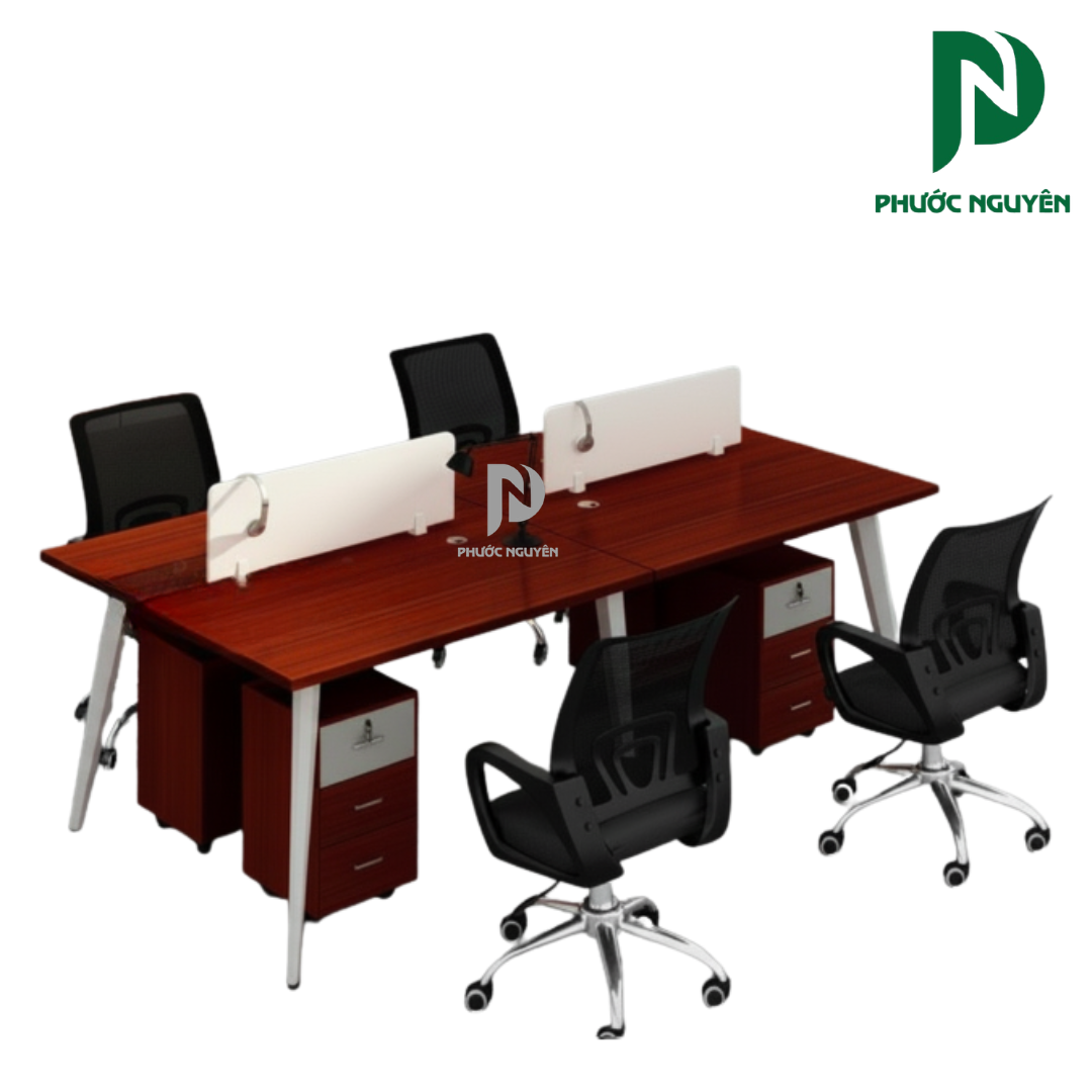 Sản phẩm được chế tác từ hệ khung thép sơn tĩnh điện với công nghệ xử lý bề mặt tiên tiến, đảm bảo sự ổn định tuyệt đối và không rung lắc trong suốt quá trình sử dụng. Mặt bàn phủ Melamine mịn màng không chỉ nâng tầm thẩm mỹ mà còn cực kỳ dễ vệ sinh, lau chùi. Khả năng tùy biến linh hoạt tại Phước Nguyên cho phép khách hàng lựa chọn màu sắc đồng bộ với bộ nhận diện thương hiệu, giúp nâng tầm đẳng cấp không gian làm việc.