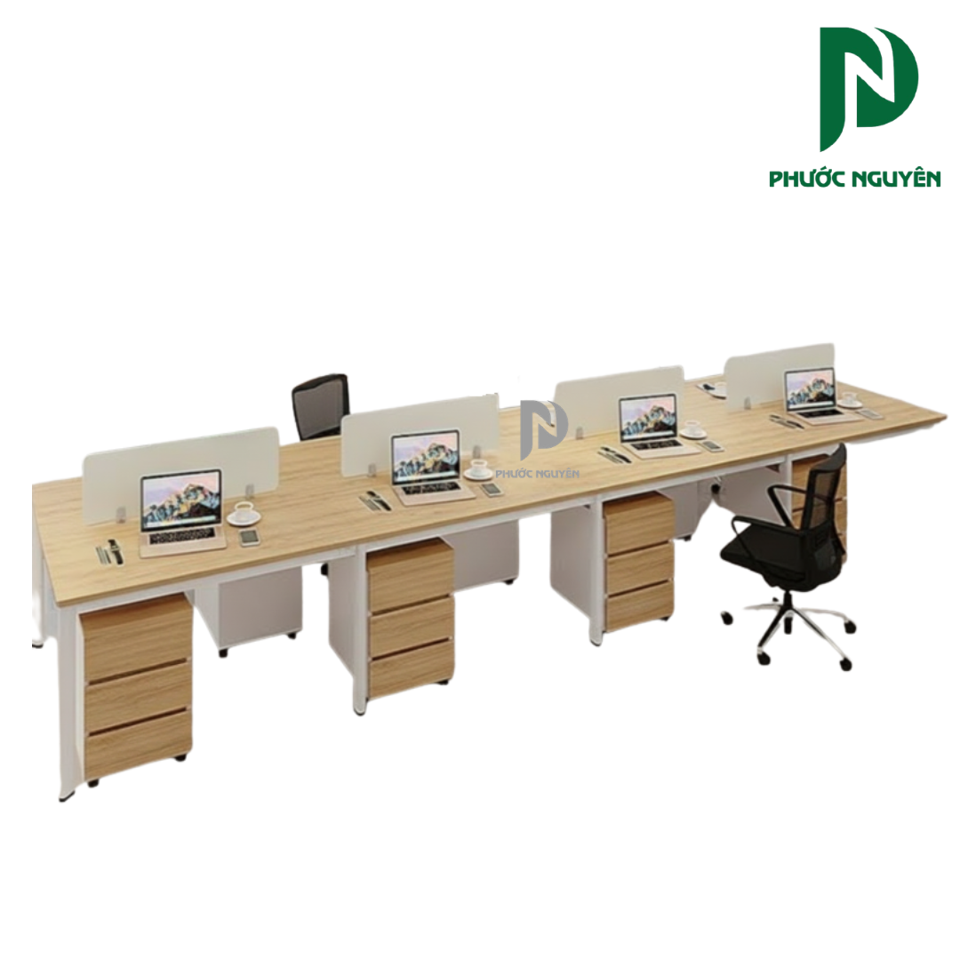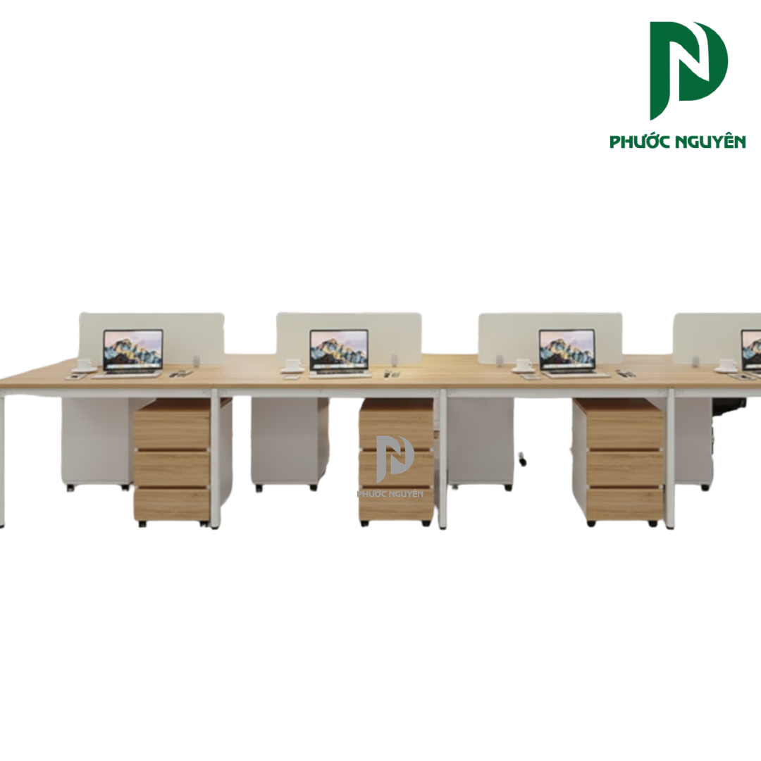 Sản phẩm đóng vai trò then chốt trong việc xây dựng văn hóa làm việc kết nối và chia sẻ thông tin. Thiết kế cụm 8 chỗ cho phép các thành viên dễ dàng tương tác, trao đổi ý tưởng và quản trị dự án theo nhóm một cách nhanh chóng nhất. Chính sự gần gũi trong cách bố trí này giúp tinh thần đồng đội được củng cố, đồng thời tạo điều kiện thuận lợi cho cấp quản lý theo sát tiến độ công việc một cách xuyên suốt.