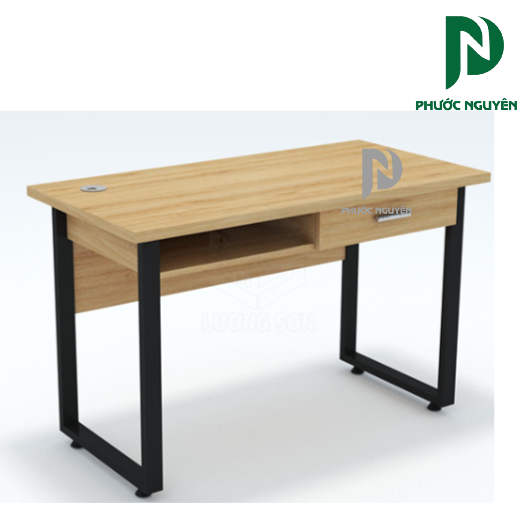Mặt bàn gỗ công nghiệp phủ melamine có khả năng chống trầy xước, chống bám bẩn và dễ lau chùi. Bề mặt phẳng rộng giúp đặt laptop, tài liệu hoặc các thiết bị làm việc một cách gọn gàng và thuận tiện.