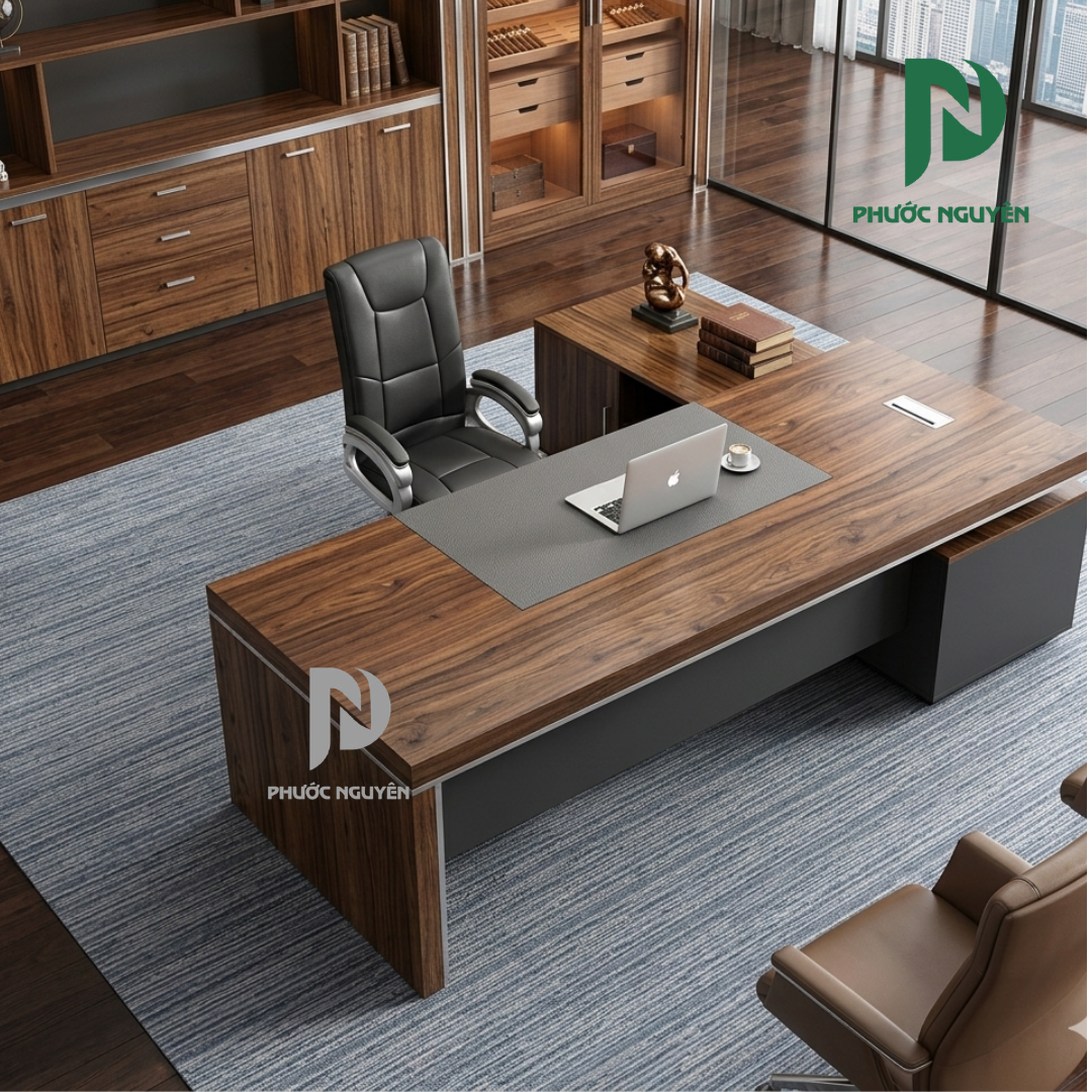 Bàn lãnh đạo chữ L- 002 là sự lựa chọn ưu việt cho những nhà quản lý cần một không gian làm việc rộng mở để xử lý đa nhiệm hiệu quả. Với cấu trúc góc chữ L đặc trưng, sản phẩm không chỉ nhân đôi diện tích thao tác mà còn tạo ra sự phân khu chức năng thông minh: một bên dành cho các thiết bị công nghệ hiện đại, bên còn lại ưu tiên cho việc ký kết văn bản và lưu trữ hồ sơ hiện hành.
