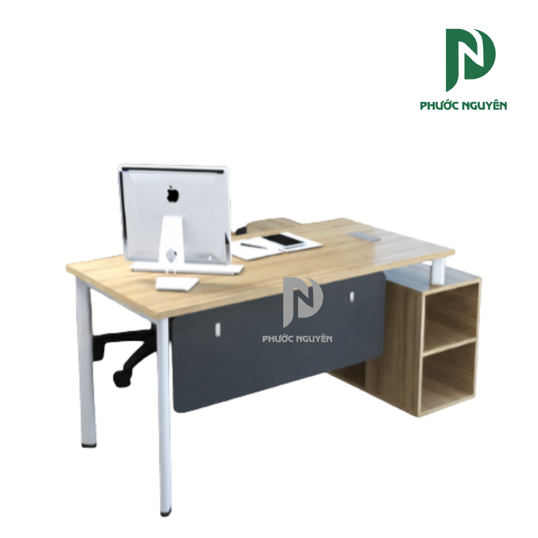 Sản phẩm trung thành với ngôn ngữ thiết kế phẳng, hiện đại trên nền chất liệu gỗ công nghiệp cao cấp phủ Melamine. Sự kết hợp giữa những đường nét vuông vắn và cấu trúc góc cạnh tinh tế giúp model 001 toát lên vẻ đĩnh đạc, quyền uy nhưng vẫn vô cùng thanh thoát, xóa tan cảm giác bí bách của những mẫu bàn giám đốc khối kín truyền thống.