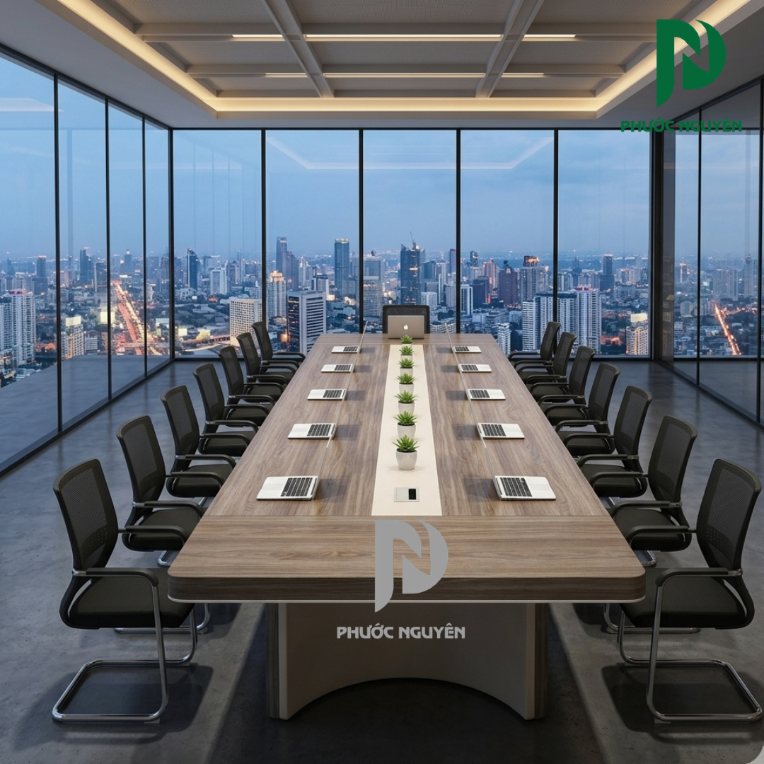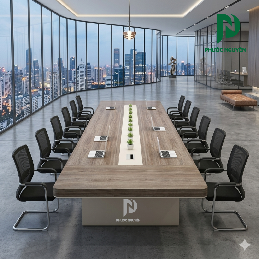 Sản phẩm có thể tùy chỉnh linh hoạt về kích thước và màu sắc, phù hợp với nhiều mô hình phòng họp khác nhau, từ không gian vừa đến lớn, giúp tạo nên tổng thể đồng bộ và chuyên nghiệp cho doanh nghiệp.