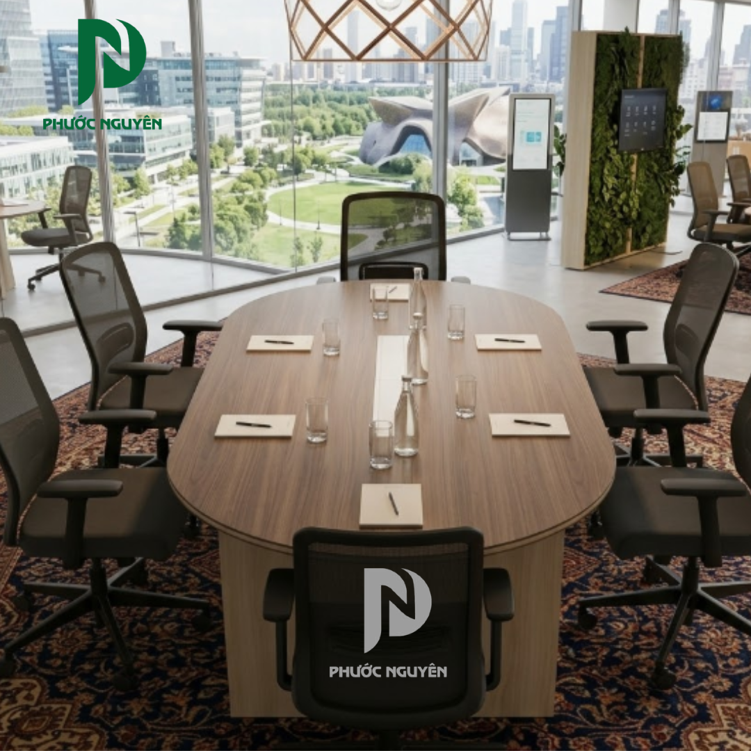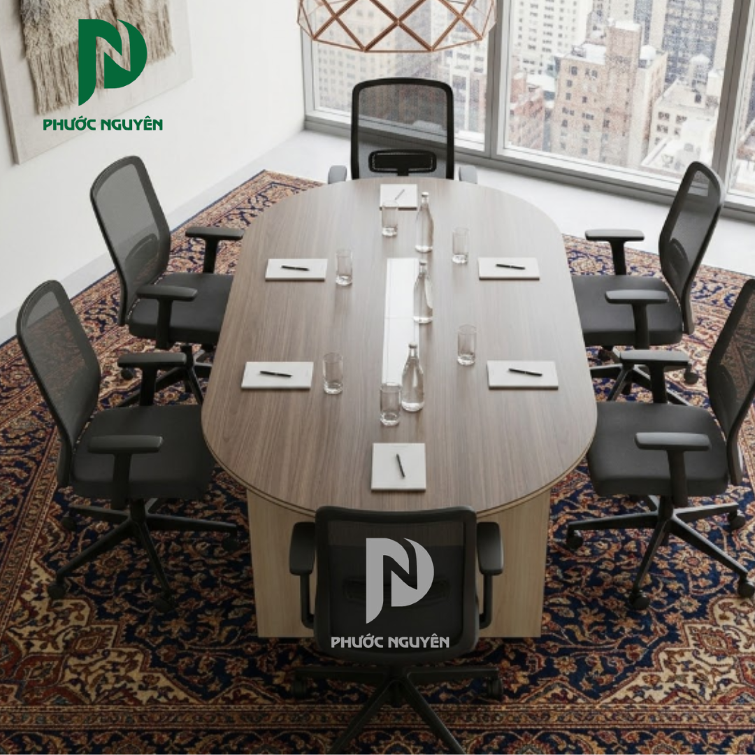 Thiết kế bo tròn giúp tối ưu diện tích và tạo sự an toàn khi sử dụng, đồng thời tăng tính tương tác giữa các vị trí ngồi, giúp cuộc họp diễn ra tự nhiên và hiệu quả hơn.