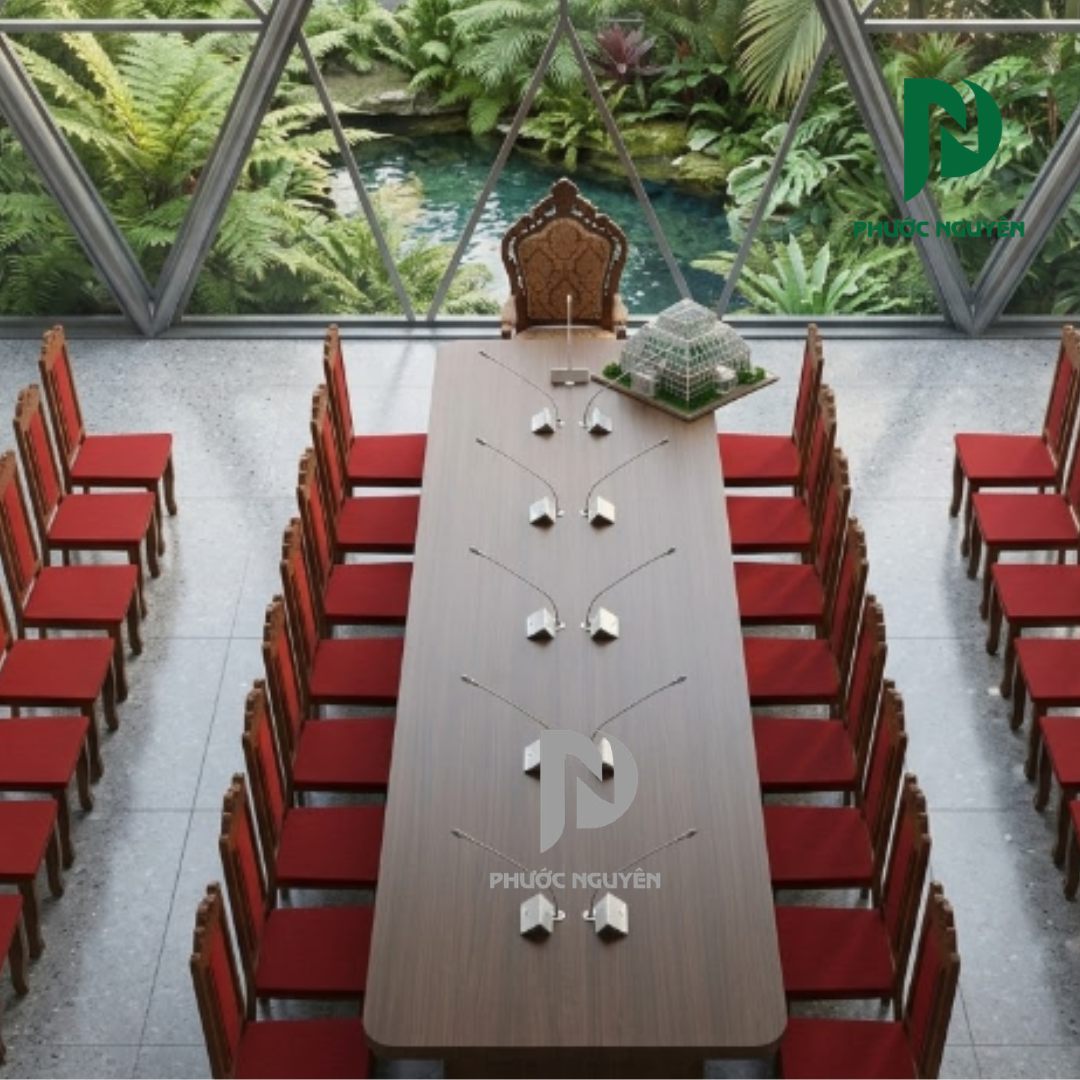 Bàn phòng họp 0018 là dòng sản phẩm hội tụ sự uy nghiêm và bề thế, đặc biệt phù hợp cho các không gian hội trường, phòng họp cơ quan hoặc các doanh nghiệp yêu cầu sự trang trọng tuyệt đối. Với thiết kế hình chữ U hoặc hình khối lớn khép kín, mẫu bàn này tạo nên một hệ thống làm việc tập trung, giúp người điều hành dễ dàng bao quát toàn bộ cuộc họp.