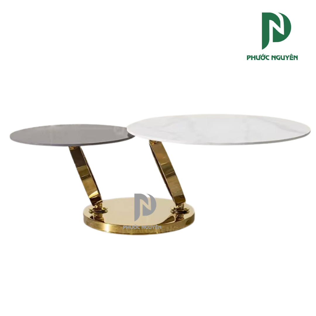 Sự hòa quyện giữa mặt đá phiến bền bỉ và hệ khung inox mạ vàng lấp lánh tạo nên một diện mạo đầy quyền uy nhưng không kém phần tinh tế. Sản phẩm không chỉ là nơi phục vụ những tách trà thơm mà còn là "trạm kết nối" chiến lược, giúp những cuộc đàm phán trở nên cởi mở, thân thiện và nâng tầm vị thế chuyên nghiệp của người đứng đầu doanh nghiệp.
