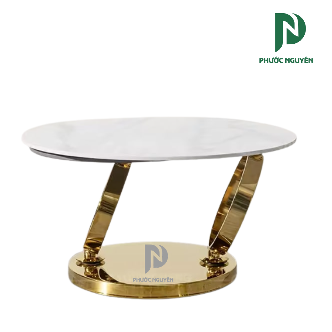 Sản phẩm sở hữu ưu điểm vượt trội với mặt đá phiến cao cấp, mang lại khả năng chống trầy xước, chống thấm và chịu được nhiệt độ cao từ các bộ trà nóng. Vẻ đẹp tự nhiên của vân đá kết hợp cùng độ bóng bẩy của khung inox mạ vàng không chỉ tạo hiệu ứng thị giác sang trọng mà còn rất dễ dàng vệ sinh, giúp khu vực tiếp khách luôn giữ được vẻ sáng bóng, chỉn chu ngay cả sau những buổi tiếp đón đông người.