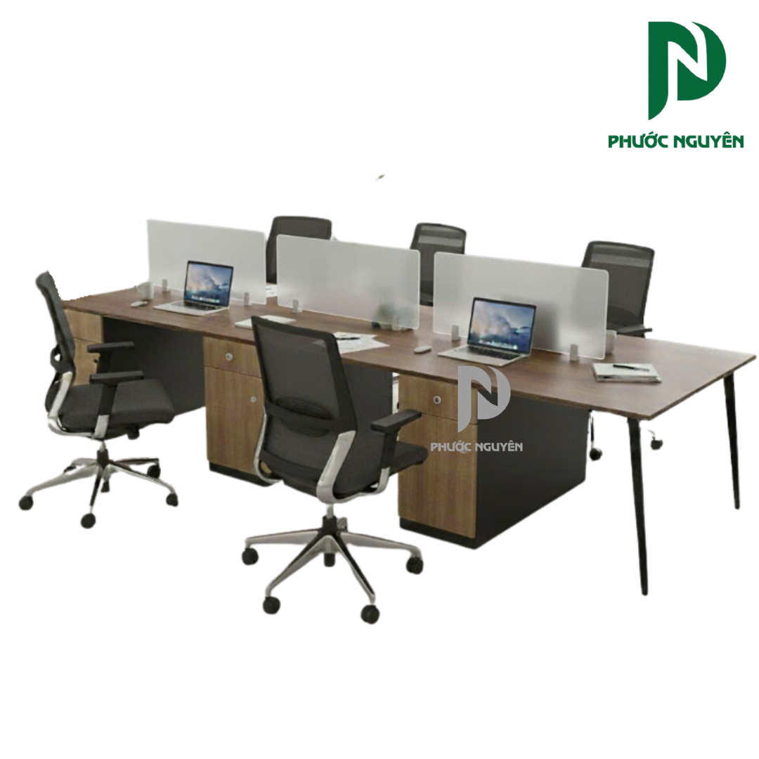 Sản phẩm được tối ưu hóa cho mục đích làm việc nhóm, giúp thu hẹp khoảng cách giữa các vị trí nhưng vẫn đảm bảo sự riêng tư cần thiết. Việc bố trí 6 người ngồi cùng một cụm giúp các thành viên dễ dàng tương tác, trao đổi thông tin nhanh và hỗ trợ lẫn nhau trong các dự án chung, từ đó cải thiện đáng kể tốc độ xử lý công việc và tăng cường tính gắn kết trong nội bộ phòng ban.