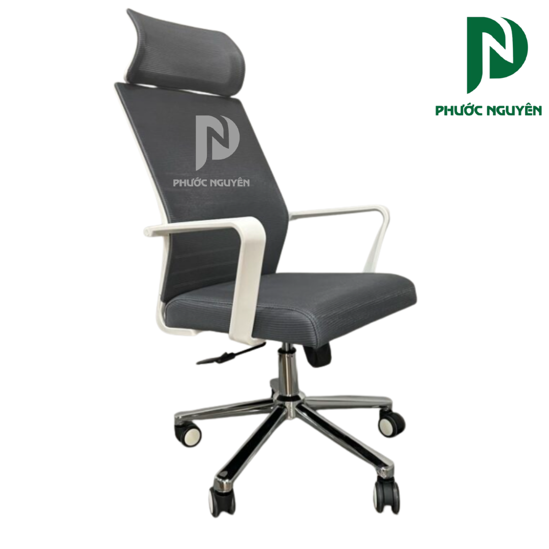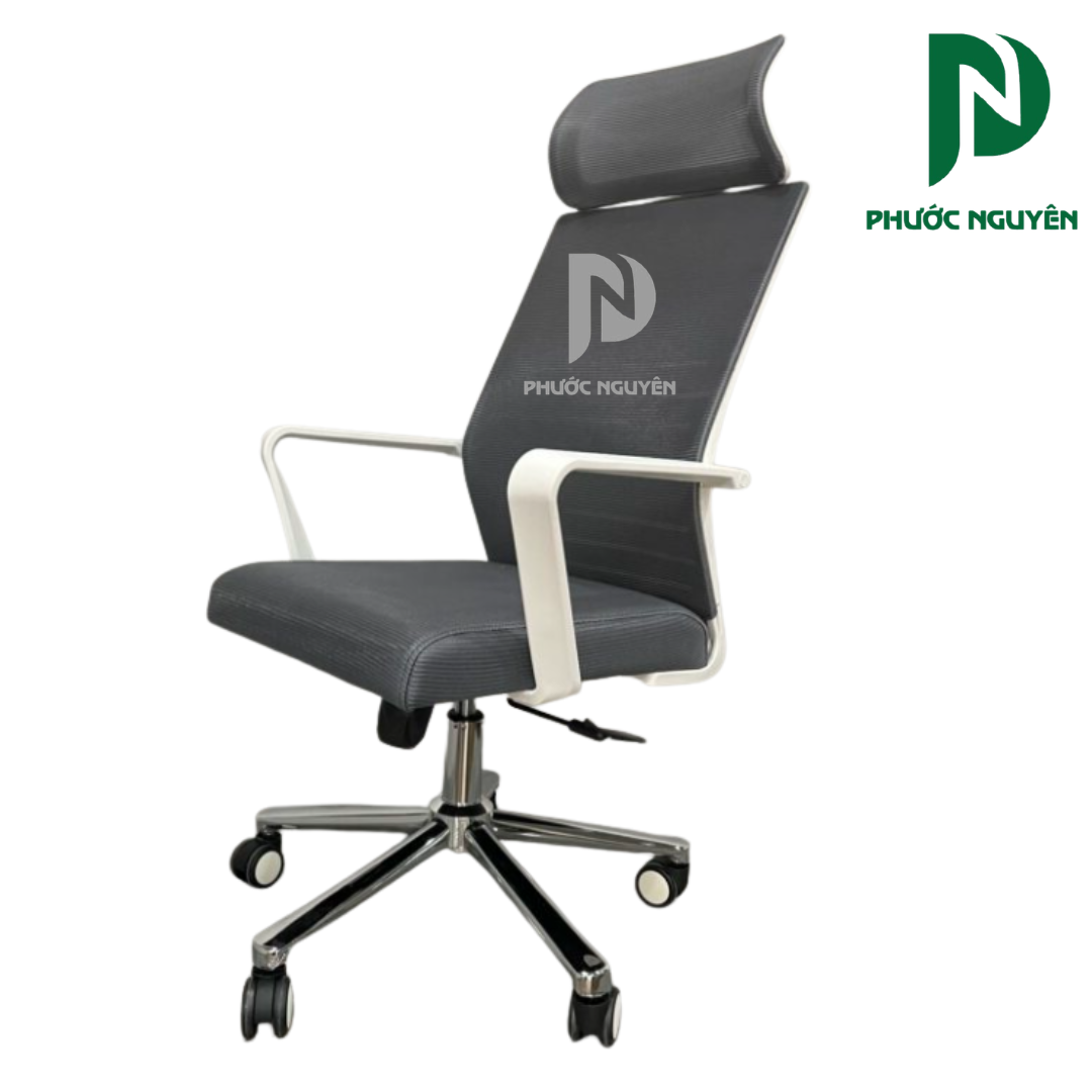 Phần tựa lưng lưới giúp tăng khả năng thoáng khí, hạn chế tích nhiệt khi ngồi lâu. Đệm ngồi mút đúc bọc vải nỉ mang lại cảm giác êm ái, hỗ trợ tốt cho người dùng trong quá trình làm việc.