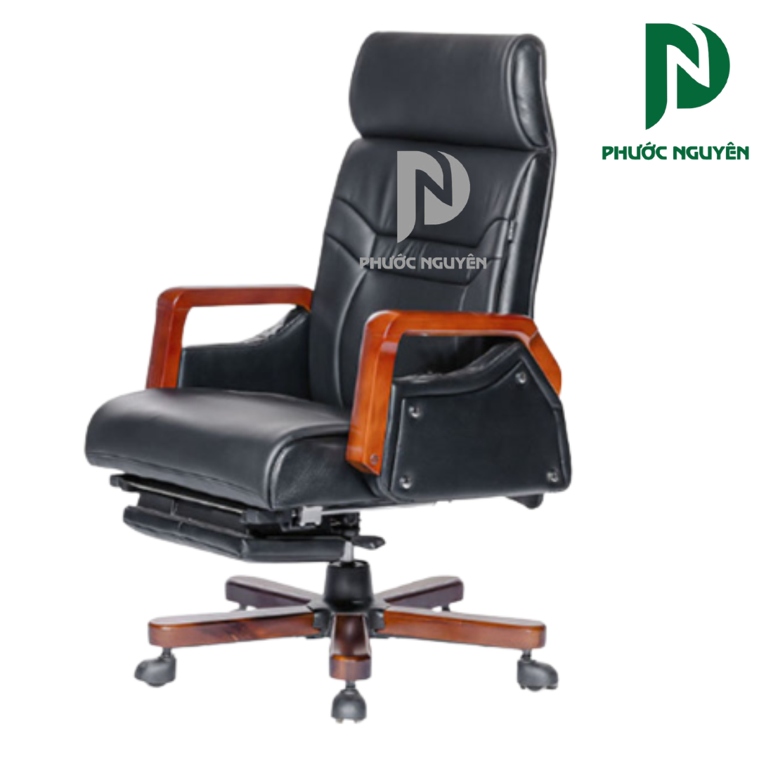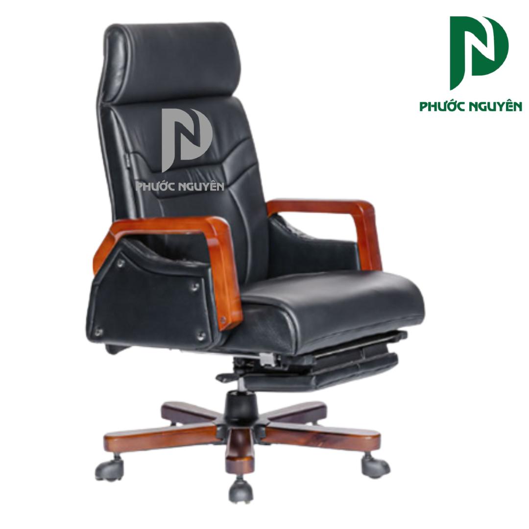 Chân và tay ghế làm từ gỗ tự nhiên sơn PU không chỉ tăng độ bền mà còn tạo điểm nhấn thẩm mỹ sang trọng. Cơ chế điều chỉnh linh hoạt giúp người dùng dễ dàng thay đổi tư thế, nâng cao trải nghiệm sử dụng và hiệu quả làm việc.