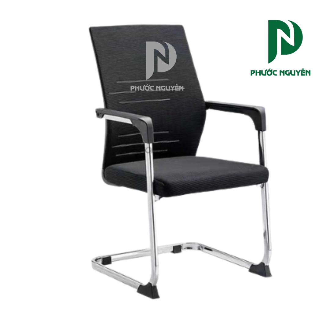 Phần lưng lưới thoáng khí mang lại cảm giác dễ chịu khi ngồi trong thời gian dài, đồng thời hỗ trợ nâng đỡ lưng hiệu quả. Đệm ngồi bọc vải êm ái giúp tăng sự thoải mái, phù hợp cho các buổi làm việc hoặc họp kéo dài.