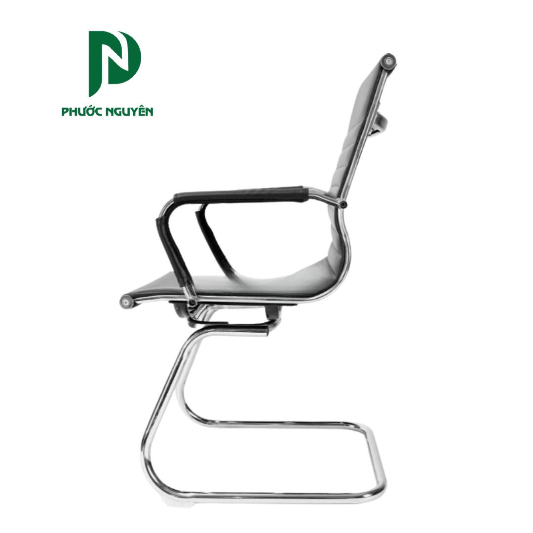 Phần lưng và đệm ngồi bọc da mang lại cảm giác êm ái, dễ vệ sinh và tạo sự sang trọng cho không gian sử dụng. Thiết kế này phù hợp với nhu cầu sử dụng trong thời gian vừa phải, đặc biệt trong môi trường văn phòng hoặc phòng họp.