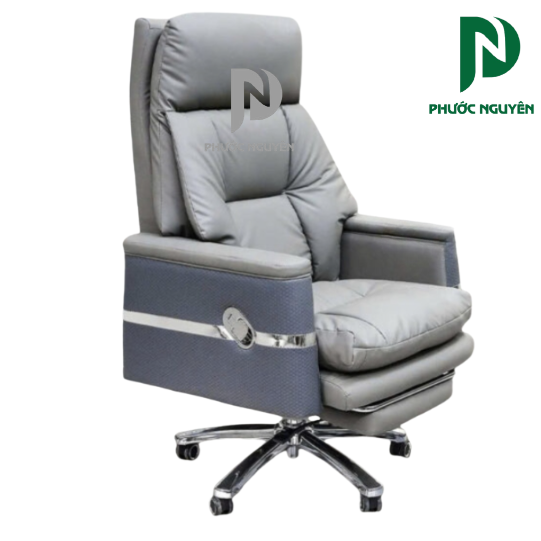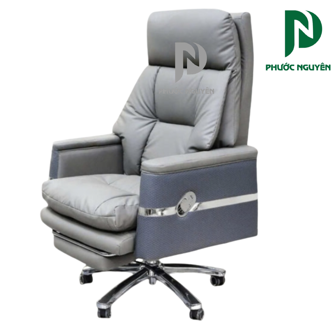 Phần đệm và tựa lưng bọc da PU cao cấp mang lại cảm giác êm ái, hỗ trợ tốt cho người dùng khi làm việc trong thời gian dài. Thiết kế ngả lưng linh hoạt từ 90 đến 160 độ giúp dễ dàng thay đổi tư thế khi cần nghỉ ngơi.