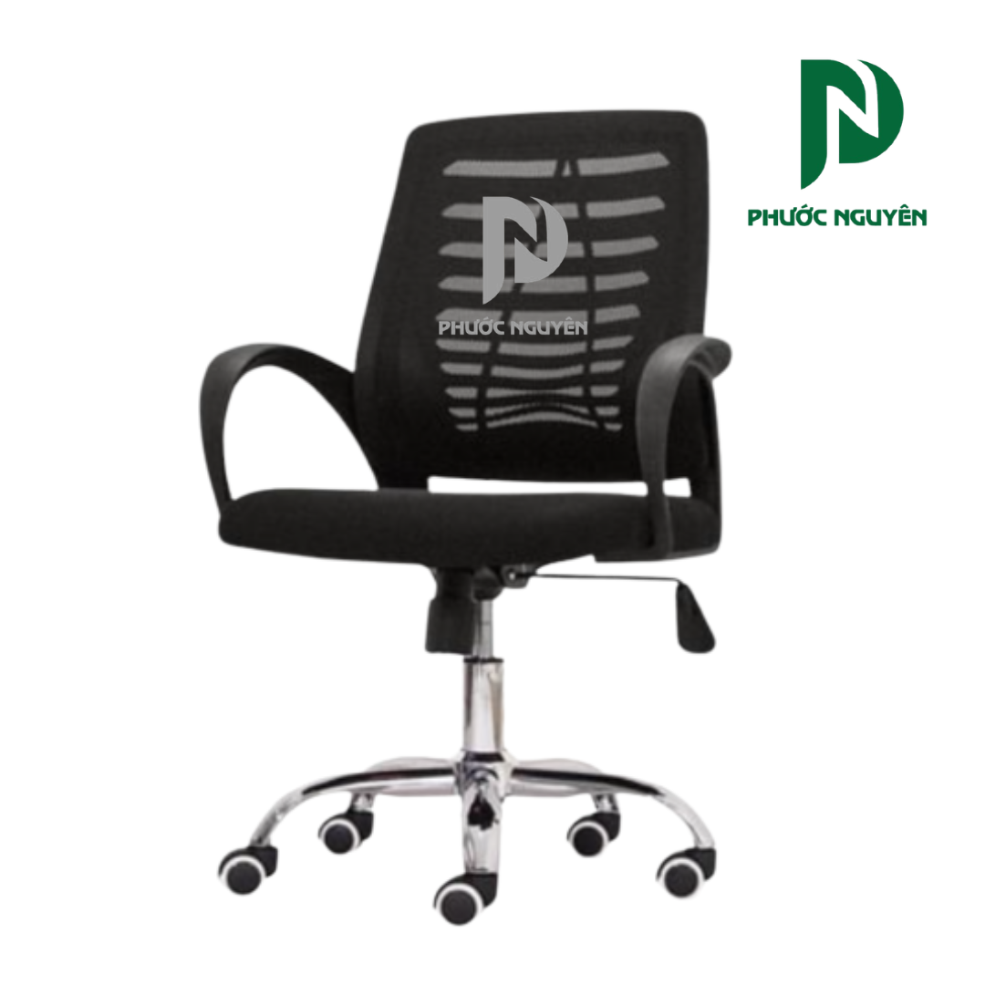 Phần lưng lưới kết hợp khung nhựa giúp tăng độ thoáng khí, hỗ trợ nâng đỡ cột sống hiệu quả và tạo cảm giác dễ chịu khi ngồi lâu. Đệm ngồi êm ái giúp giảm áp lực, mang lại sự thoải mái trong suốt quá trình làm việc.