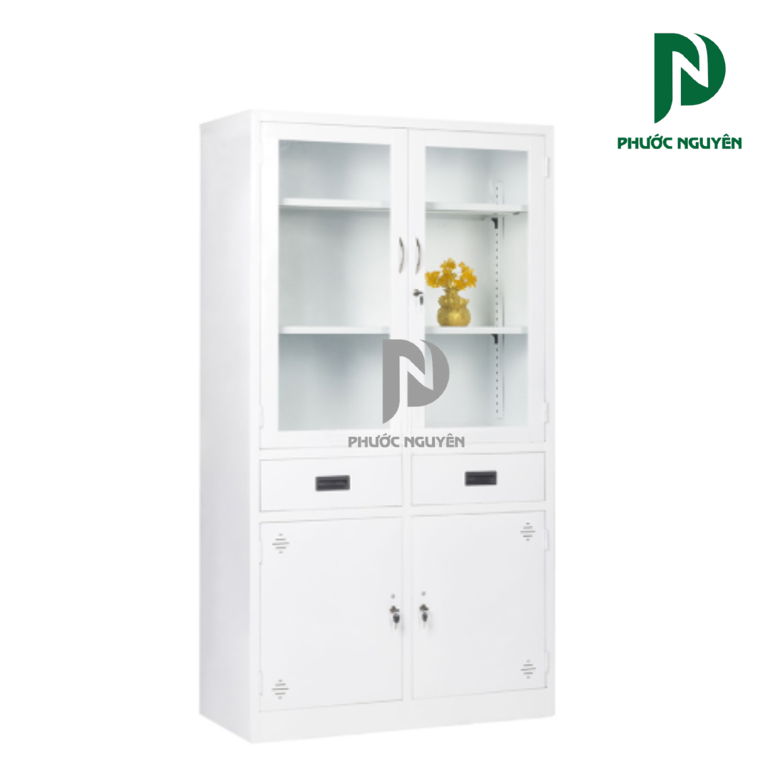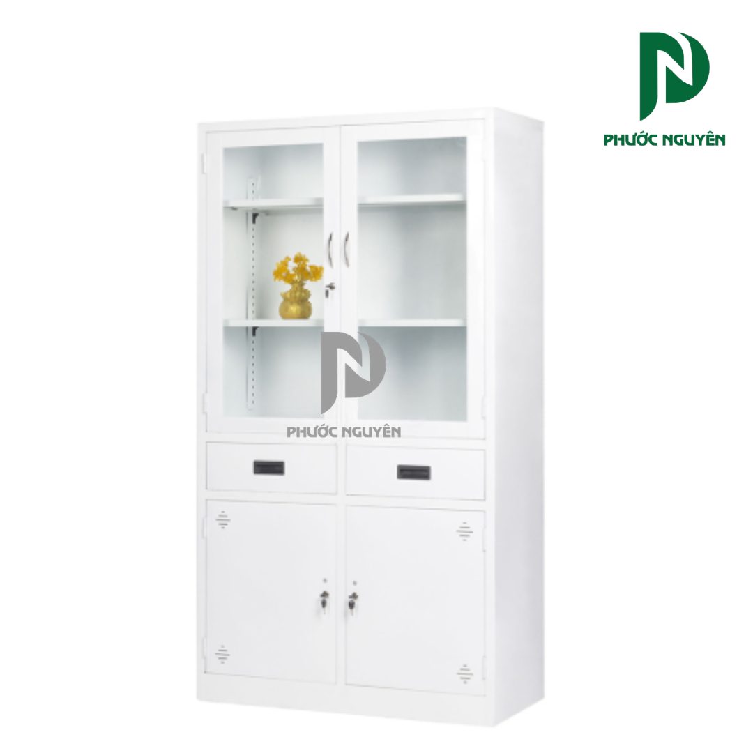 Tủ tài liệu sắt- 002 là giải pháp lưu trữ chuyên dụng, được thiết kế để đáp ứng những tiêu chuẩn khắt khe nhất về độ bền và tính bảo mật trong môi trường công sở. Với cấu trúc kết hợp thông minh giữa khung sắt vững chãi và các cánh kính tinh tế, sản phẩm xóa tan định kiến về sự thô cứng của nội thất kim loại, thay vào đó là một diện mạo hiện đại, thanh thoát. Gam màu trắng chủ đạo không chỉ giúp tối ưu hóa ánh sáng cho văn phòng mà còn tạo nên một không gian làm việc sạch sẽ, chuyên nghiệp và đầy cảm hứng.